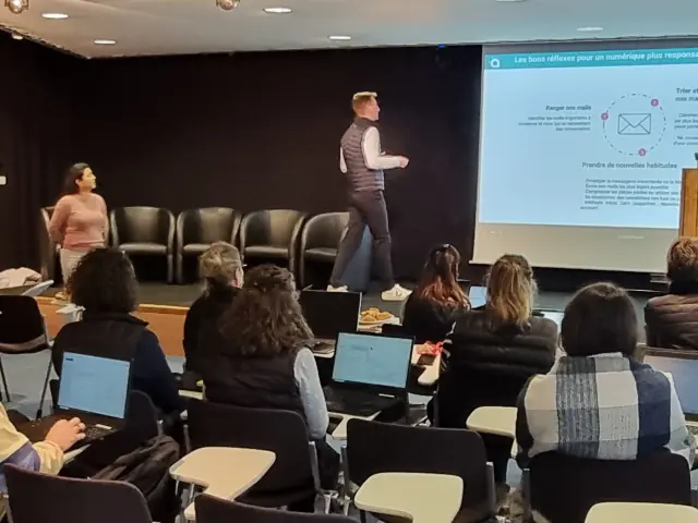 Ce temps collectif a permis aux collaborateurs d’échanger autour de 2 questions concrètes : où se cache la pollution numérique dans nos pratiques quotidiennes, et quels réflexes adopter pour la limiter durablement ? Au-delà de la sensibilisation, l’exercice s’est traduit par un résultat tangible : 175 Go de données supprimées sur les boîtes Outlook, soit des dizaines de milliers de fichiers inutiles en moins et l’équivalent de plusieurs dizaines de kilomètres en voiture évités chaque année.