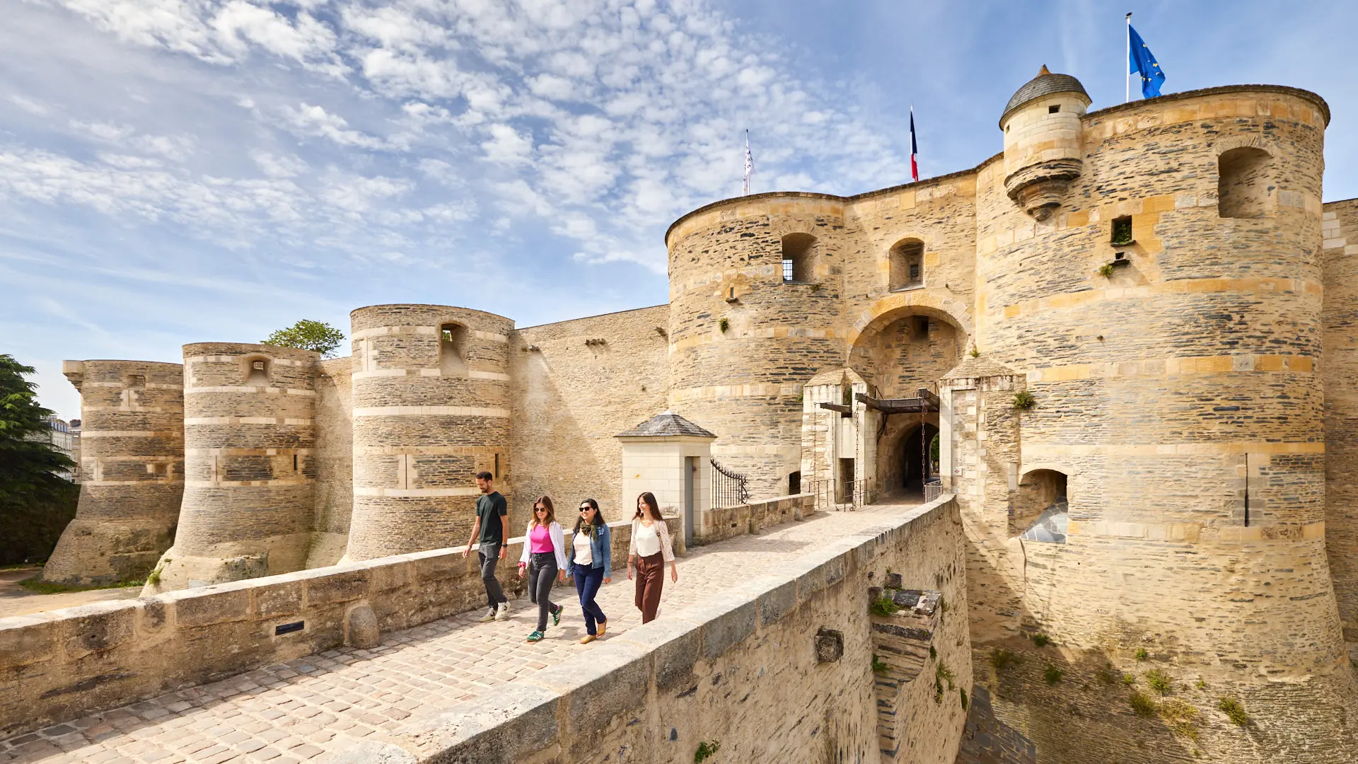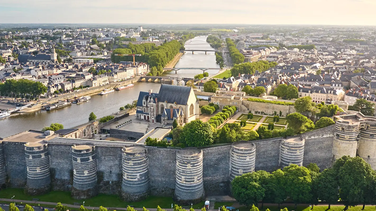 Angers castle with its emblematic 800m of castellated enclosure looks as if it is a natural extension of the rocky promontory sitting high above the river Maine. No matter how you approach it, from the river or down one of the ancient cobbled streets, the long windowless walls are accentuated by duotone towers with their ominous configuration of arrow slits, hinting at not only its architectural dominance over the surrounding city but also its majesty and historical importance.