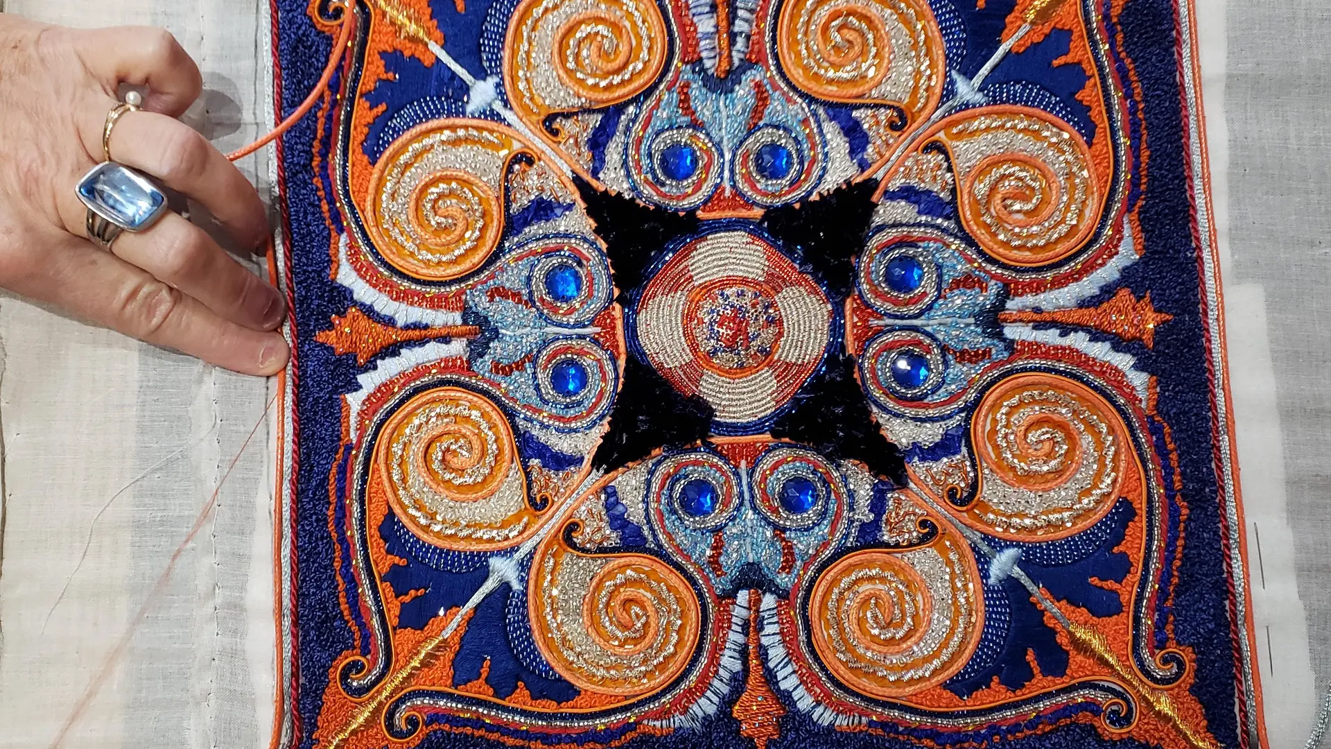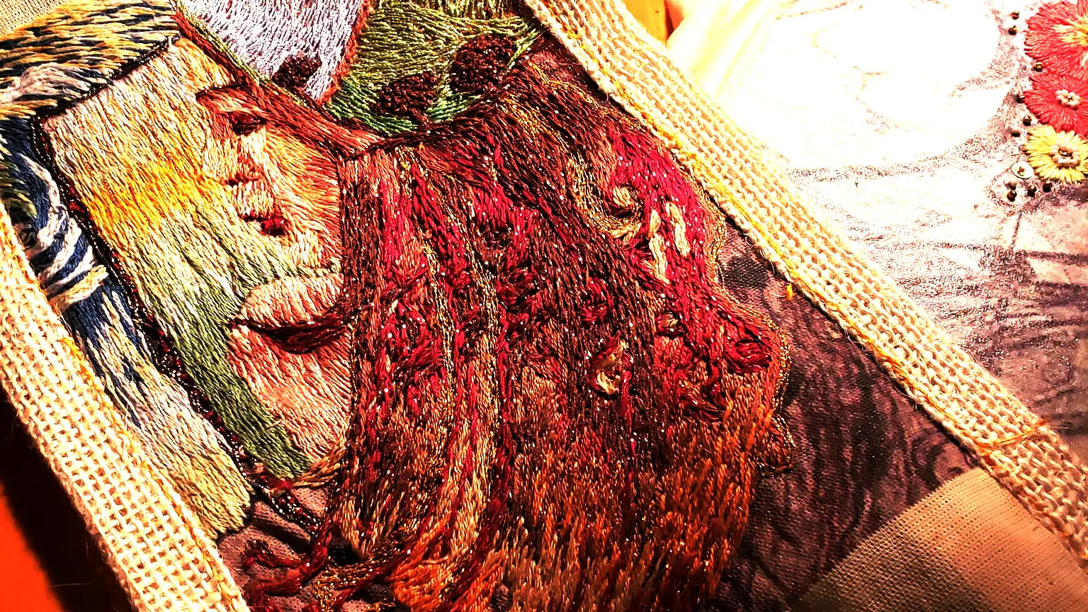 Martine Maudet trained in applied arts at the Pivaut school in Nantes, and has a cap in art embroidery, obtained in Paris. She also took a year's training in tapestry at the Ecole des Beaux Arts in Angers, and can weave on both basse and haute lisse looms. As an artist, she is constantly seeking new creative avenues, without ever forgetting the knowledge of her predecessors. Her aim is to combine different artistic techniques to create a unique work. She sculpts, embroiders, weaves, draws, paints and teaches her skills with great pleasure, in the firm belief that practicing an artistic activity is therapeutic and creates a social bond.
