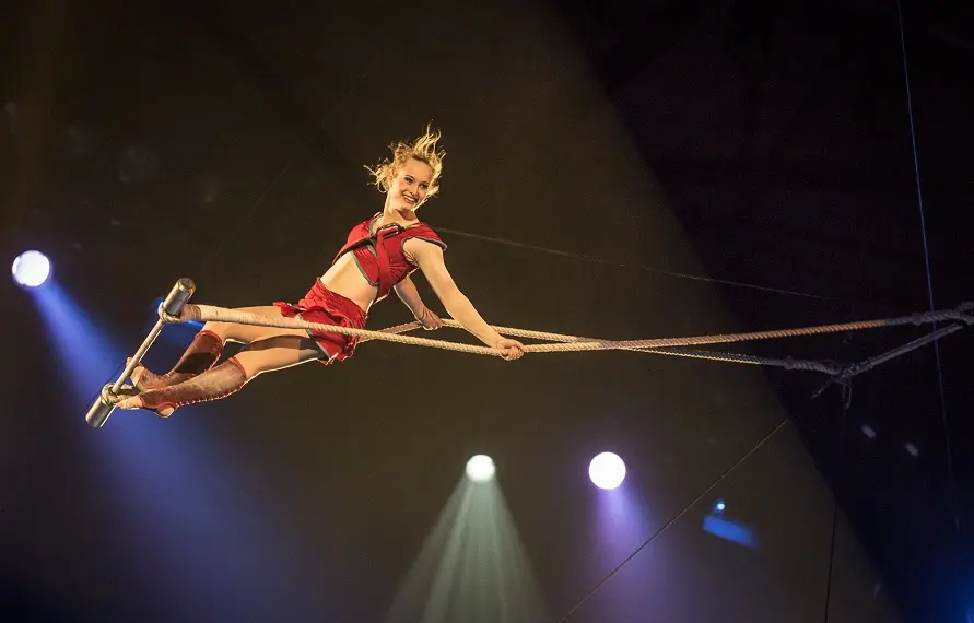 It's a poetic, sensory journey. The show explores the suspension of time: bodies in flight, voices rising, light gliding over stone. Like stardust, the artists - aerial dancers, singers and musicians - reveal the volumes of the Collégiale, filling it with human vibrations, suspended breaths and gestures.