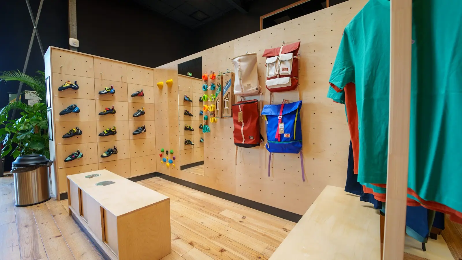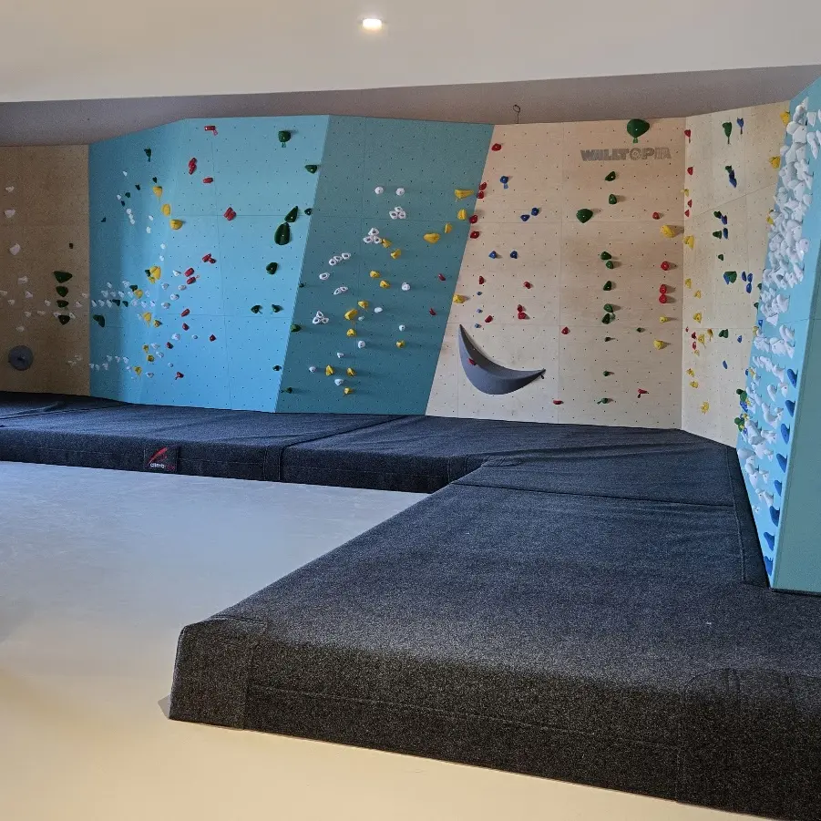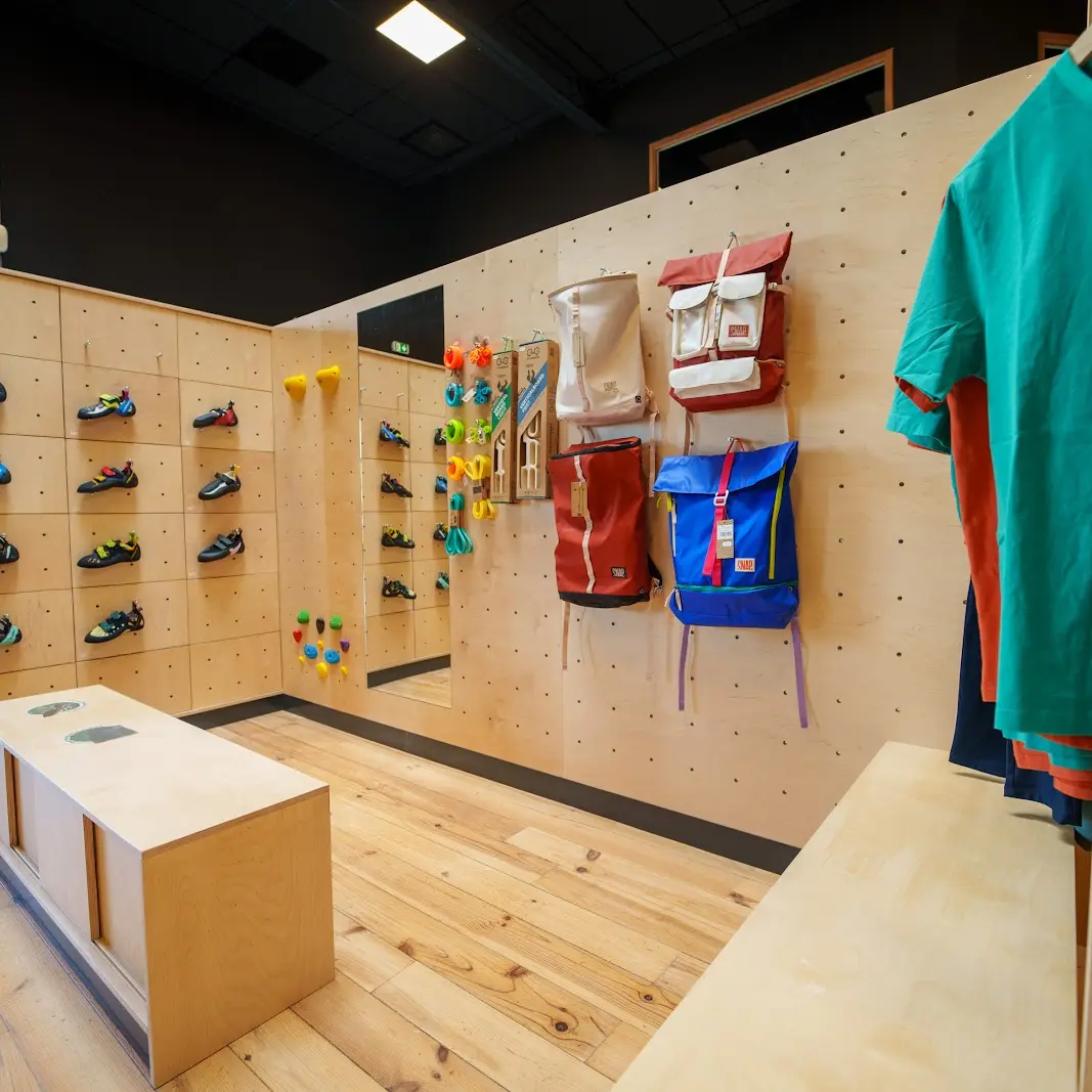Our facility is easily accessible by public transport, car or bike. On the climbing side, we offer over 125 constantly renewed boulders in a variety of styles and profiles, suitable for beginners and advanced climbers alike. A special children's area. All in an 1800m² loft with an industrial style combining the warmth of wood and the nobility of metal.