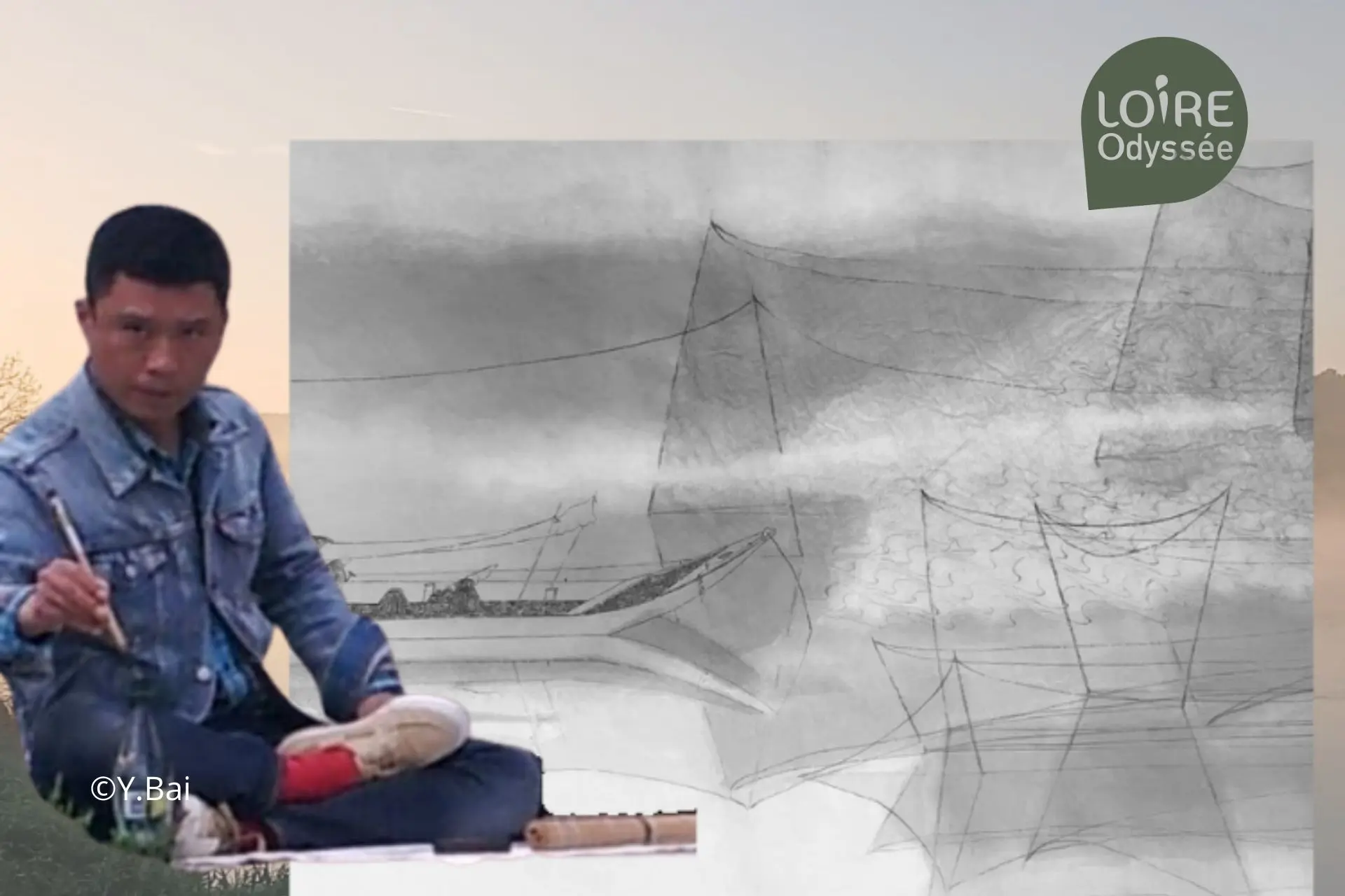 Descubra las tintas del Loira de Yi Bai 一白(Qián Chuán Bīng 钱传兵), pintor y calígrafo de Nanjing. Sentado con las piernas cruzadas, con el papel en blanco en el suelo y el pie derecho sobre el muslo izquierdo, traduce al papel lo que ve y siente sobre el Loira. Estos dibujos ofrecen una nueva visión de los paisajes familiares del Loira, invitándonos a todos a ver el Loira de una manera diferente, a explorar una nueva perspectiva y un cierto cambio en la forma en que observamos estos paisajes.