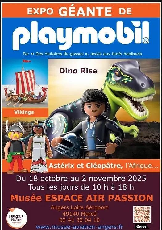 Exposición gigante de Playmobil en medio de la colección de planeadores, helicópteros y aviones del museo. Este año, la asociación Des Histoires de gosses y coleccionistas privados presentan nuevas escenas con miles de figuras Playmobil: ASTERIX Y CLEOPATRE, ÁFRICA, LOS VIKINGS, DINO RISE...