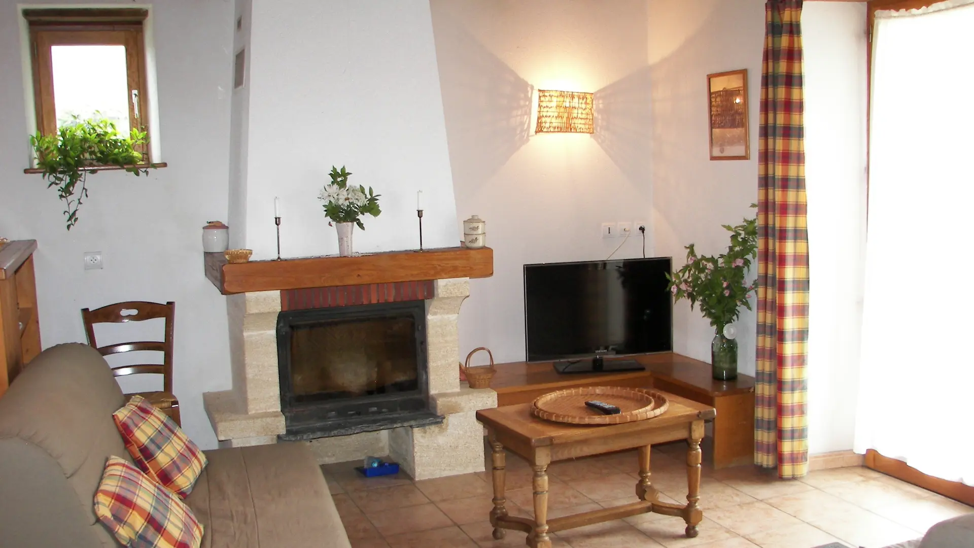 Sala de estar (35 m²) con cocina equipada, comedor con chimenea y aseo.