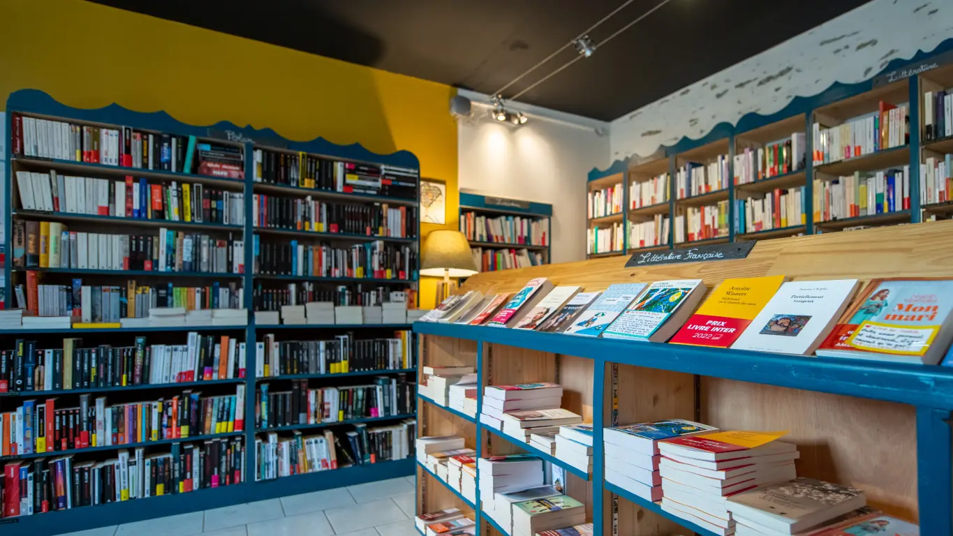 La librería incluye una selección de más de 8000 libros en un espacio de 70 m², tanto de literatura francesa como extranjera, policíacos, ciencia ficción, cocina, costura, jardinería, ensayos, historia, ciencias humanas, cómics, manga y libros infantiles.