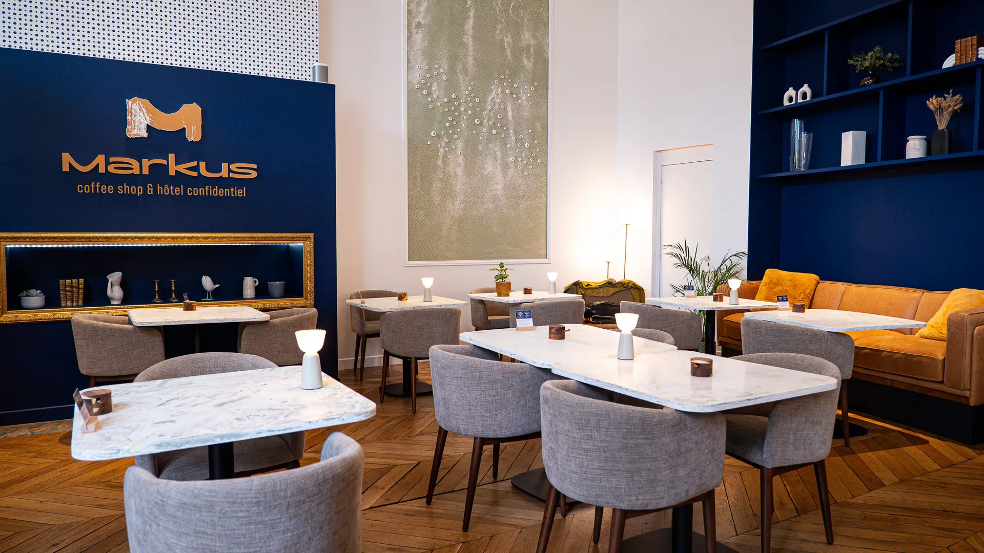 En un marco espectacular, en la 1ª planta, Markus es la nueva cafetería premium del centro de Angers: bollería y pastelería 100% casera, especialidades de café, bebidas originales 100% sin alcohol y un brunch para descubrir.