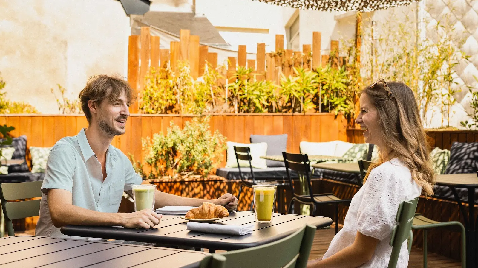 Podrá disfrutar de sorprendentes cócteles de sabores muy variados creados por nuestro bar tender, vinos 0%: blanco, tinto o crémant, cerveza 0% o kombuchas de Anjou, bebidas heladas elaboradas por nuestro barista o zumos frescos.