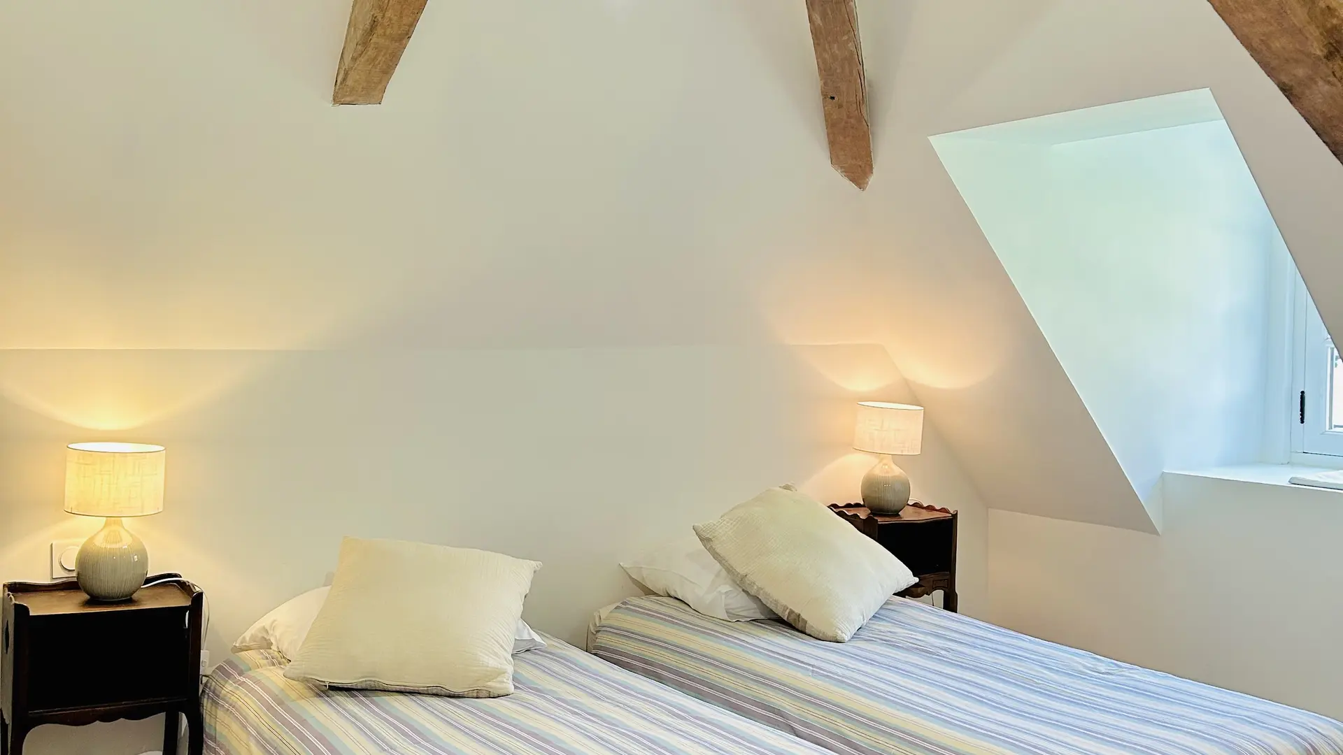 La casa rural está situada en una finca del siglo XVIII de 9 hectáreas, bordeada por el río Mayenne, con un gran parque arbolado y numerosos senderos. Una segunda casa rural (4 plazas) también está disponible en el sitio, ideal para dar la bienvenida a familias o amigos que deseen compartir unas vacaciones, preservando su independencia.