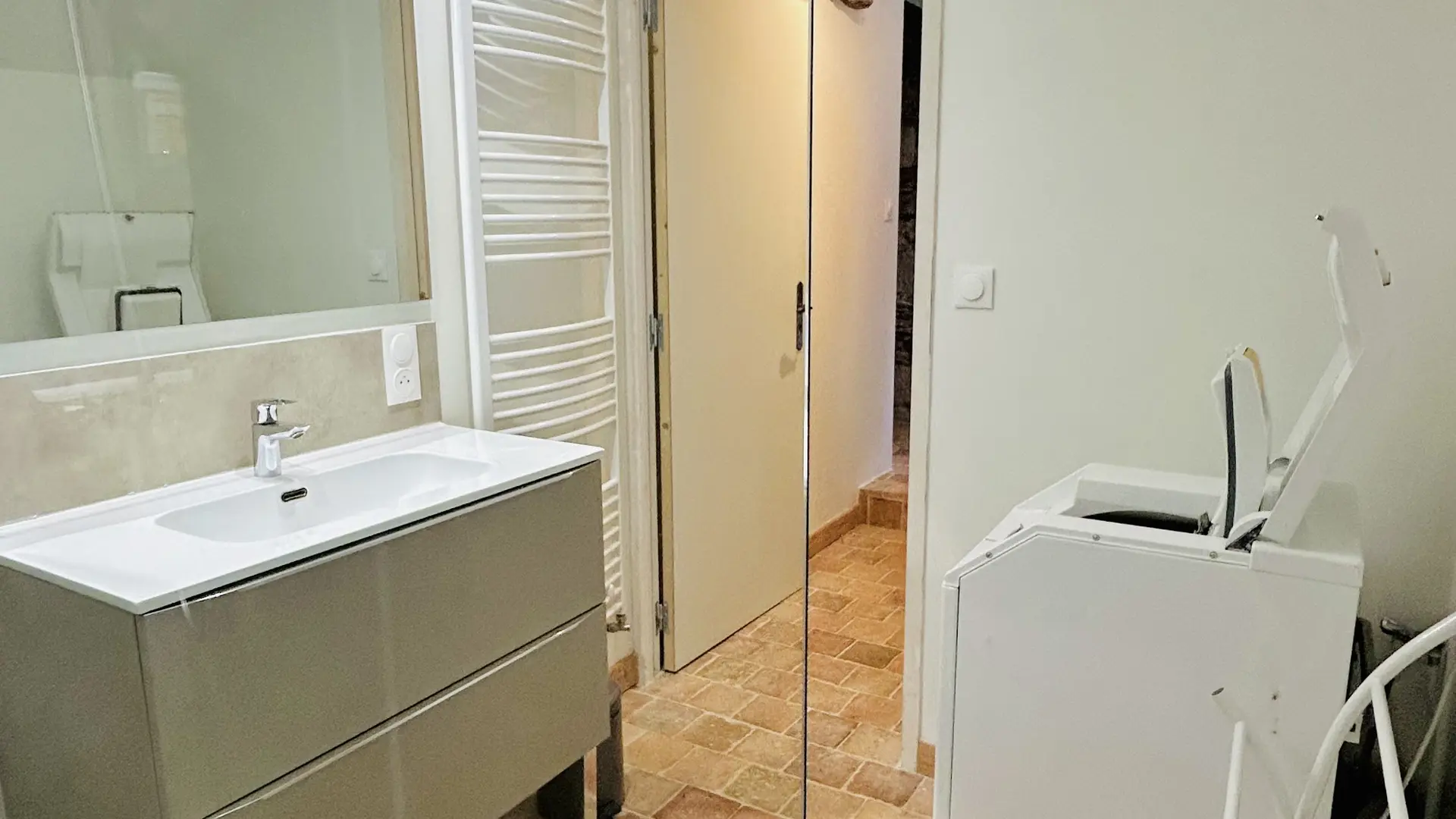Completamente renovado a principios de 2024, este bungalow combina las comodidades modernas con el encanto del viejo mundo. Le encantará el luminoso salón con paredes de piedra, estufa de leña, zona de comedor y cocina independiente equipada. Tres escalones conducen al dormitorio de la planta baja, y un escalón al cuarto de baño.