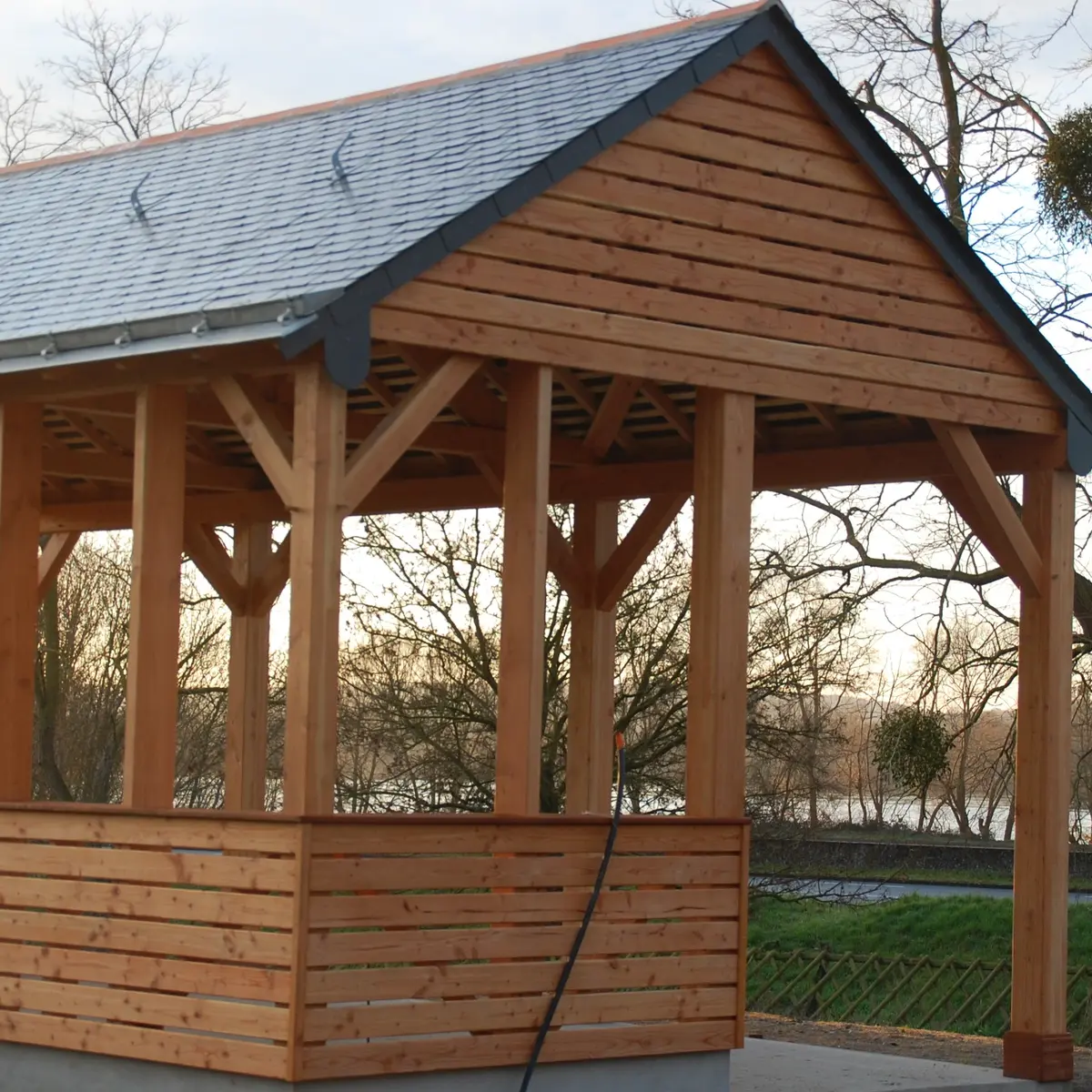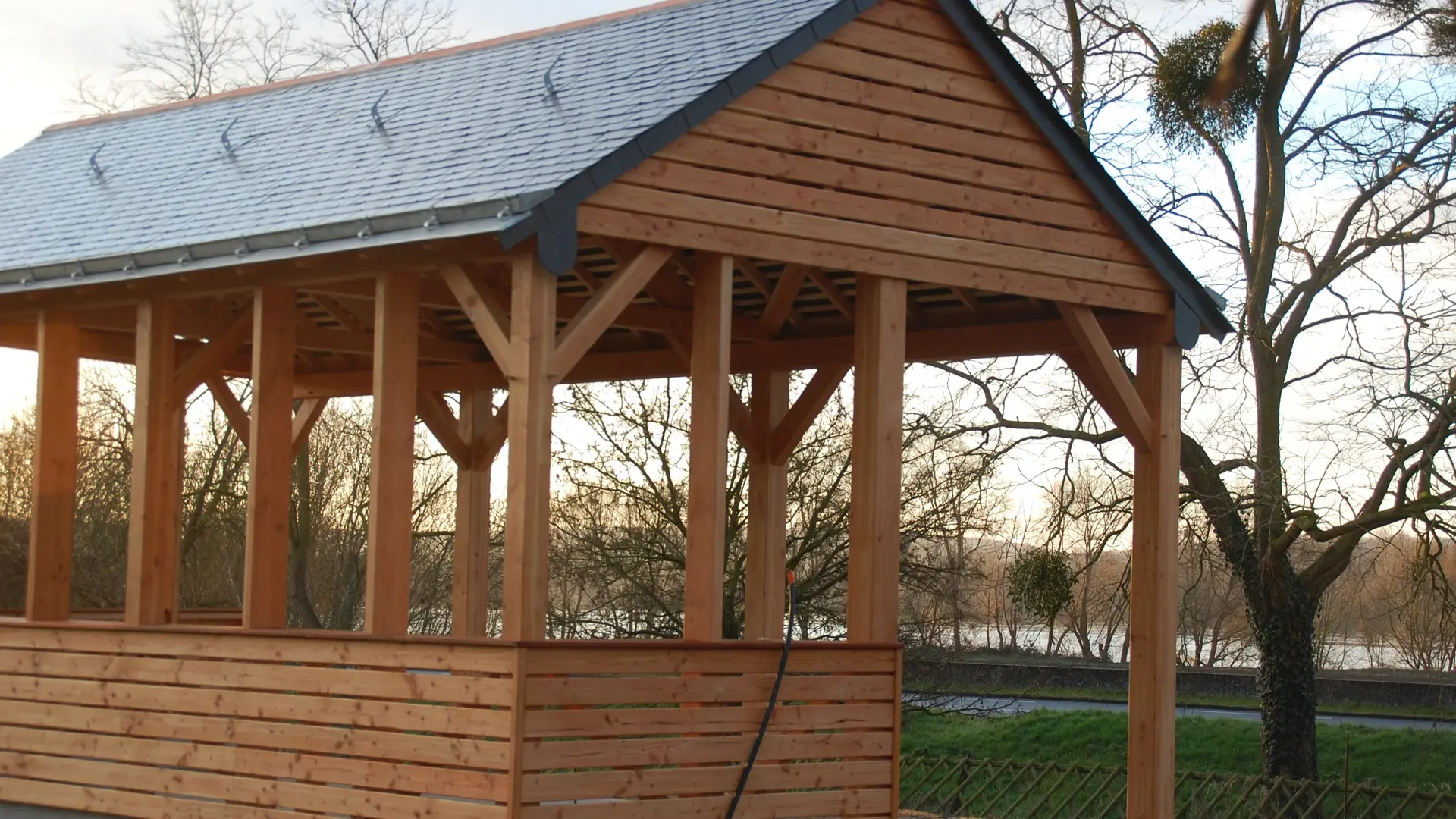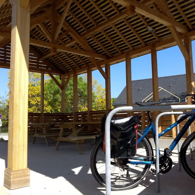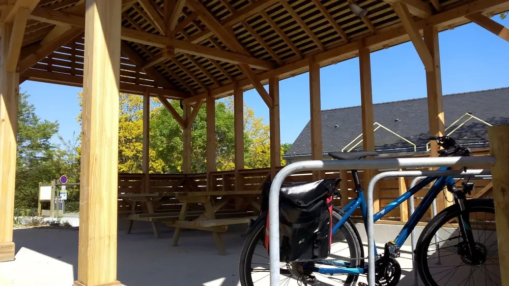 - Un abri en bois surélevé permettant de profiter de la vue sur la Loire, équipé d'une rampe d'accès aux personnes à mobilité réduite, de tables de pique-nique,