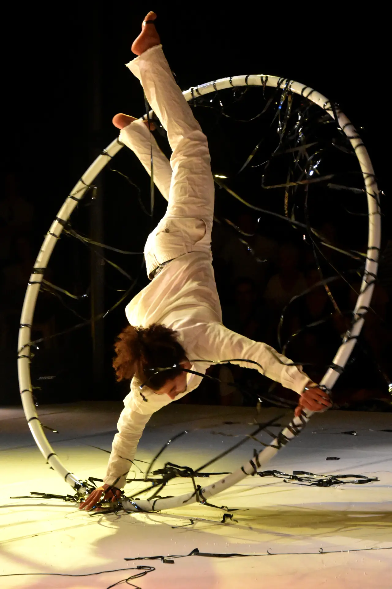 Les artistes de l’Ecole des arts du cirque la Carrière proposent une nouvelle création autour des œuvres de l’exposition « Tisser le futur ». Les acrobates évoquent un tissage subtil, métaphore des liens qui nous unissent dans un monde en constante évolution. Les corps s’entrelacent, se séparent, s’opposent pour finalement se retrouver, évoquant la complexité des réseaux qui façonne notre monde.