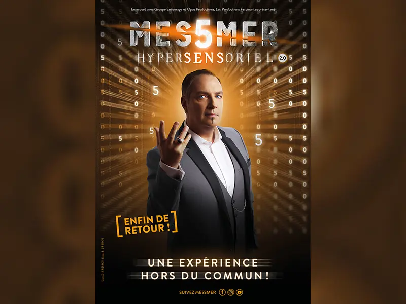 Amphitéa Angers présente MESSMER Messmer est le détenteur du record mondial d'hypnose collective. Depuis plusieurs années, Messmer analyse, observe et met à l'épreuve les sens du corps humain pour permettre au grand public d'expérimenter l'hypnose. A travers la vue, l'ouïe, l'odorat, le toucher et le goût, il vous donne accès à vos ressources personnelles les plus enfouies. Messmer a même testé l'hypnose sur des stars. Les humoristes Jarry, Inès Reg ou encore le médecin Michel Cymès, Messmer les a tous hypnotisés ! Une question subsiste, comment fait-il ? D'après le canadien Messmer, "Chacun de nos sens a des pouvoirs extraordinaires que nous méconnaissons et qui nous permettent d'appréhender notre environnement de façon bien plus précise qu'on ne le pense". Dans son spectacle Hypersensoriel, Messmer ne vous donnera pas la clef de la réussite mais il vous donnera la possibilité d'explorer vos sens, de vous porter volontaire pour des expériences étonnantes. Partez à l'aventure de votre subconscient et laissez-vous guider par l'illusionniste Messmer. Qui sait... Vous découvrirez peut-être un sixième sens qui sommeille en vous ! Découvrez les pouvoirs de l'hypnose collective avec le fascinateur Messmer. La durée du spectacle est d'environ 2h, une consultation hors du temps ! Acheter vos billets en ligne : Réservation en ligne via O Spectacle en cliquant ici Réservation en ligne via la Fnac en cliquant ici Réservation en ligne via Ticket Master en cliquant ici