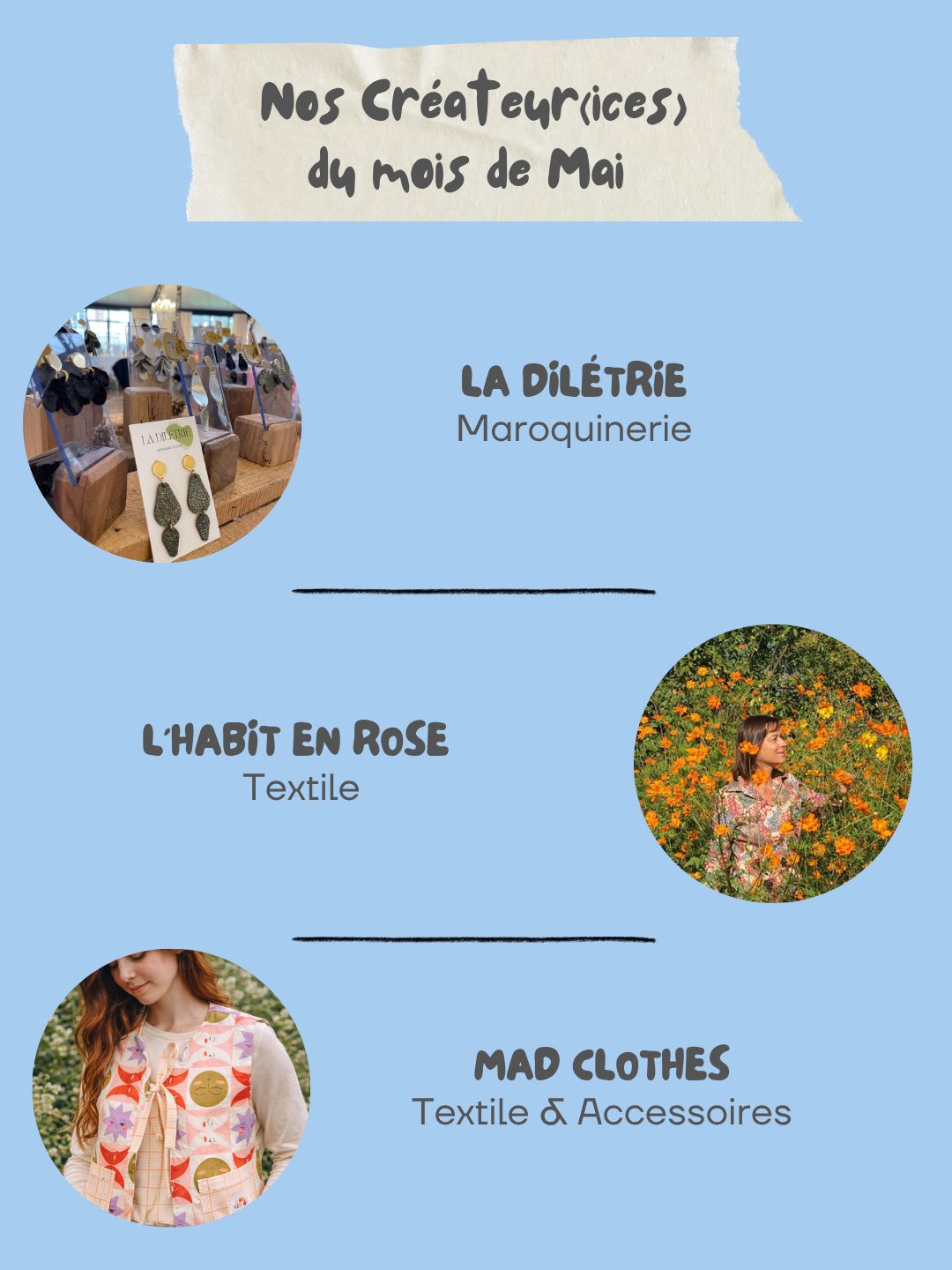 - Exposition, causeries et démonstrations de savoir-faire pour les visiteurs avec des thématiques autour de l’artisanat, des savoir-faire locaux, des métiers d’art, de la mode responsable.
