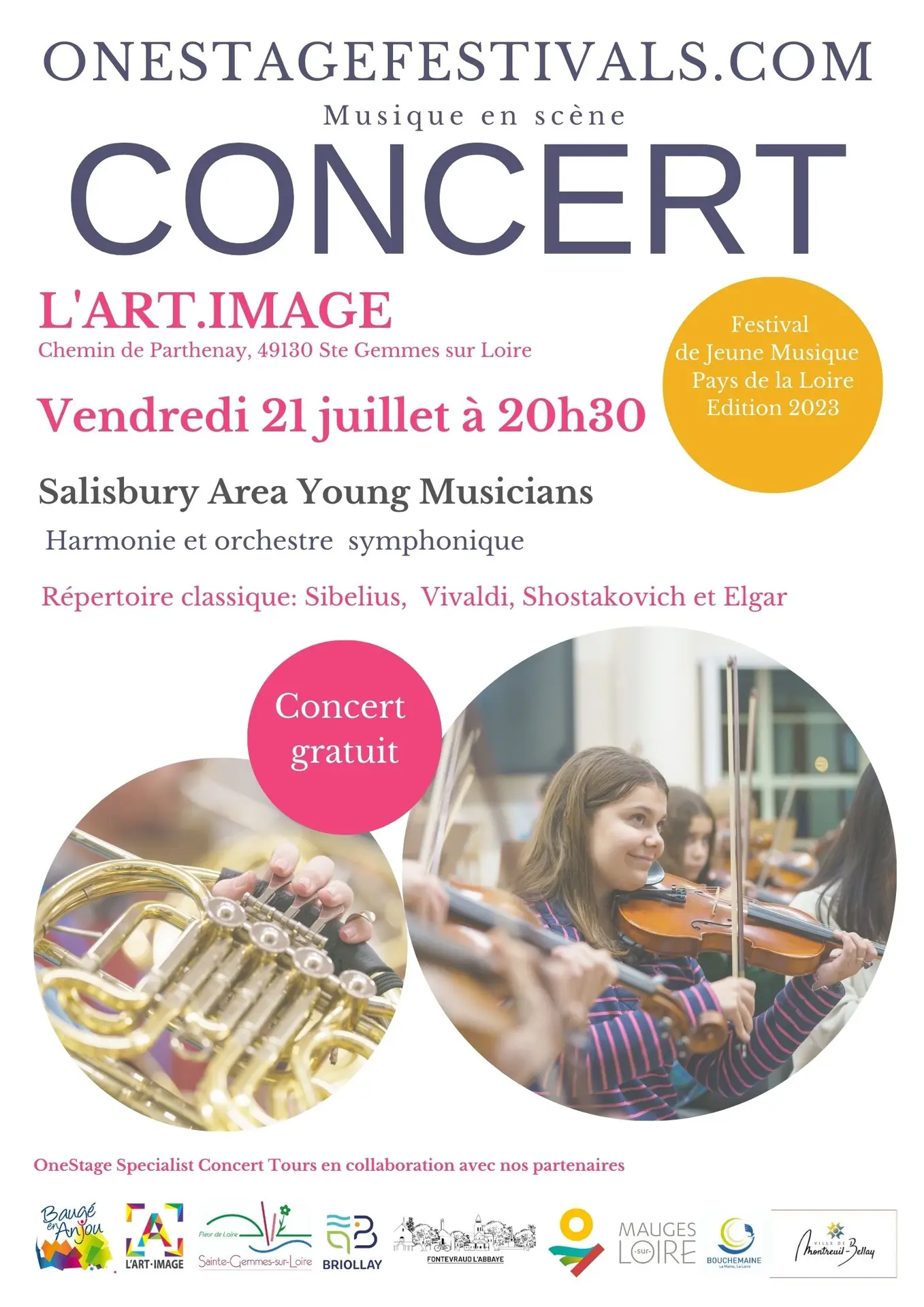 Concert Onestage du groupe de jeunes musiciens Salisbury Area Orchestre à Sainte-Gemmes-sur-Loire.