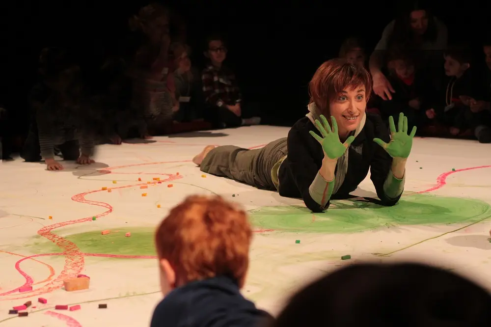 Spectacle participatif à la craie. Prévoir des vêtements adaptés.
